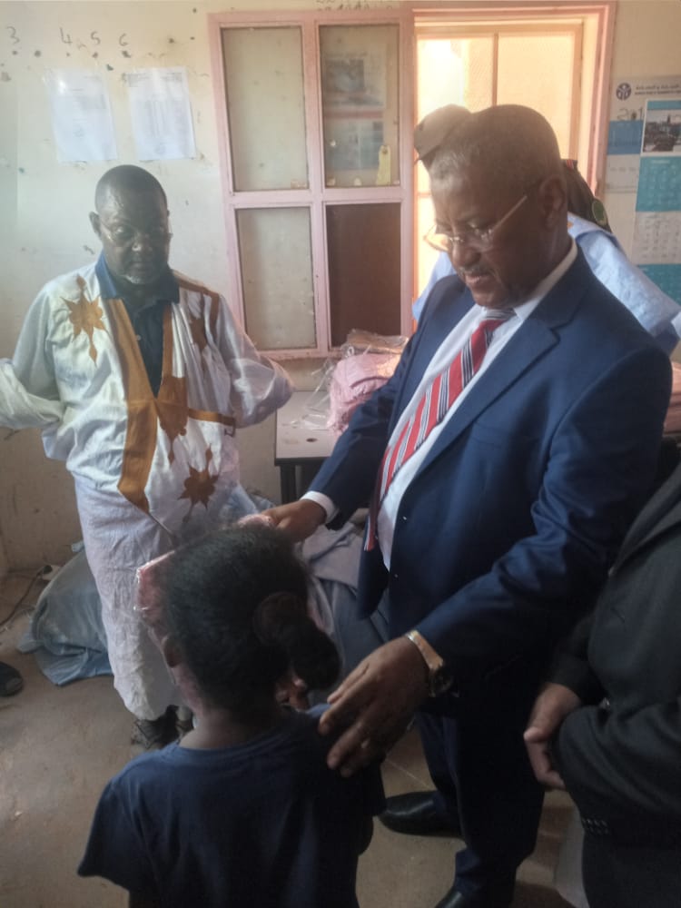 اشرف والي ولاية لعصابة السيد محمد ولد احمد مولود على انطلاق العام الدراسي الجديد من مدرسة الفاروق بكيفه بمعية المدير الجهوي للتهذيب الوطني واصلاح النظام التعليمي السيد عالي المختار اكريكد