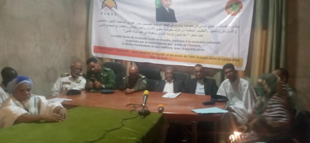 أنطلقت من مقر منتدى تجمع منظمات المجتمع المدني بكيفه فعاليات قافلة التحسيس بالقوانين المناهضة للاتجار بالاشخاص والاسترقاق والتمييز والتعذيب حيث اشرف على الانطلاقة هذه القافلة مدير ديوان الوالي الوالي وكالة السيد أحمد بزيد ولد أحمد يعقوب وبحضور حاكم مقاطعة كيفه وعمدة المدينة قادة التشكلات العسكرية والامنية