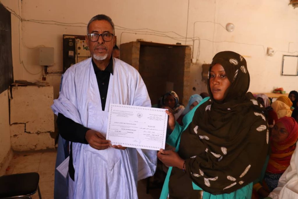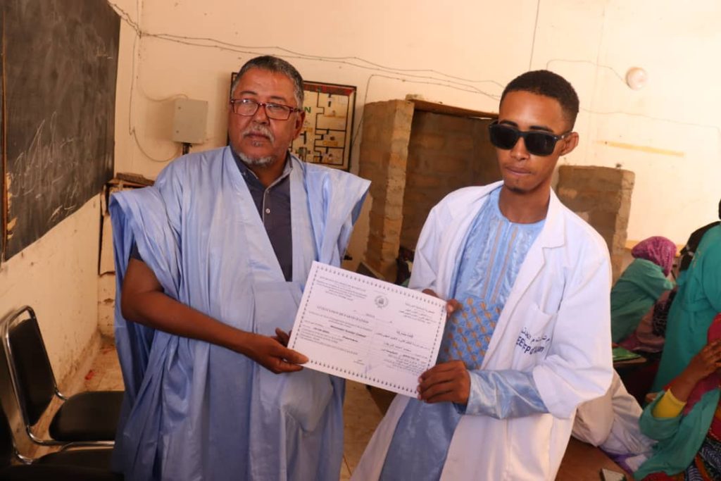 كيفه أون لاين / اختتم مشروع دعم النظام الرعوي في الساحل praps2 اليوم بمدرسة التكوين التقني والمهني بمدينة العيون عاصمة الحوض الغربي دورة تكوينية هامة دامت شهران استفاد منها 72 شابا وفتاة من عدة قري بولاية الحوض الغربي ، حيث استفادت 40 منهم من تكوين مركز في مجال صيانة واصلاح الطاقات الشمسية حيث اكتسبوا الخبرات والمهارات اللازمة لاعتمادهم على انفسهم في المجال كما استفادت 32 المتبقية منهم من تكوين اكتسبوا خلاله كذلك المعارف والمهارات والخبرات في مجال الصحة الحيوانية