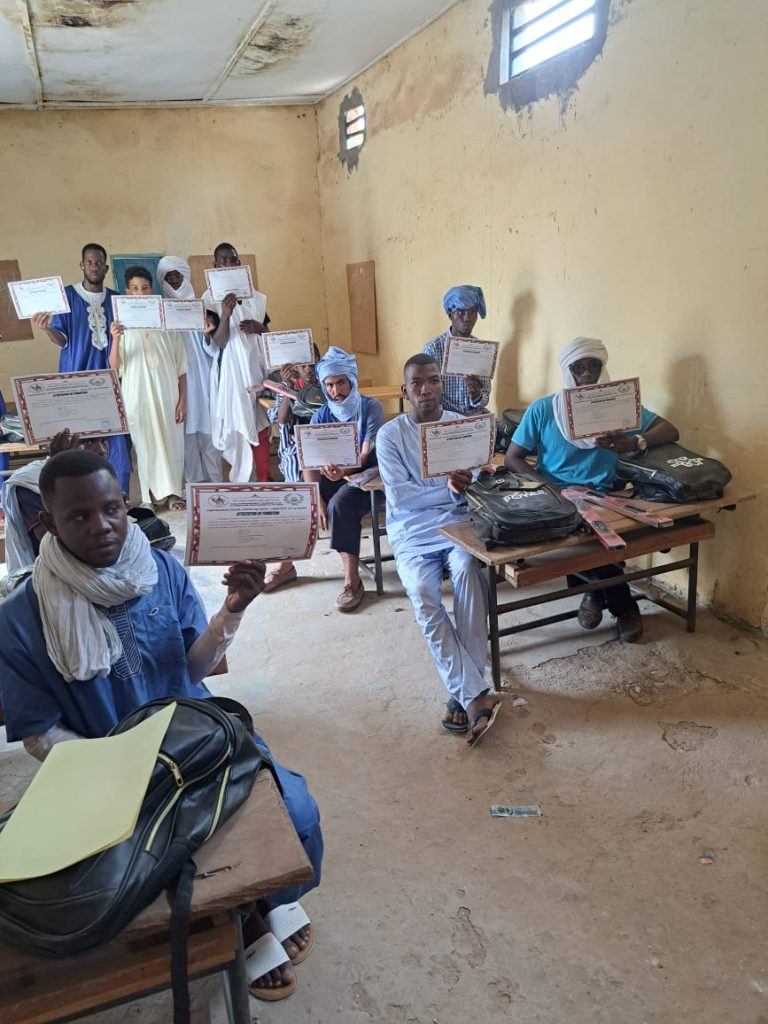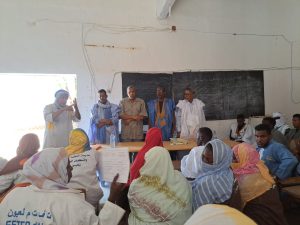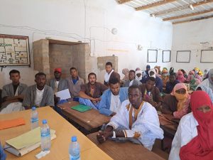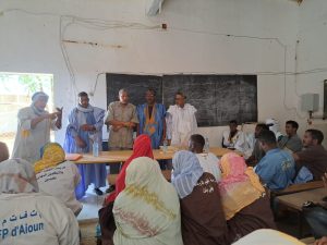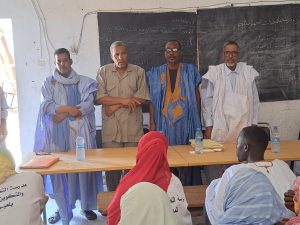 السيد محمد فاضل ولد النعمة على اختتام دورة تكوينة لصالح مجموعة من الشباب والفتيات ممولة من طرف المشروع شملت ثلات تخصصات مهمة الصباغة والخياطة واصلاح شبكات المياه وزراعة الخضروات