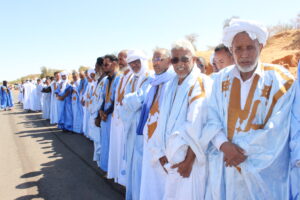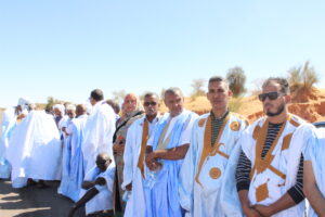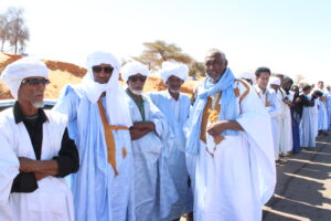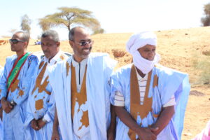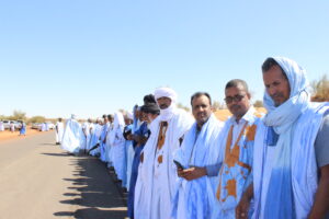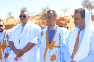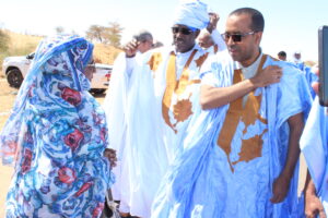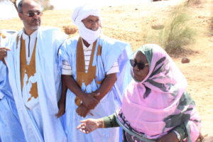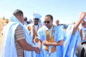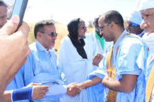 السبد محمد محمود ولد عبد الله رئيس البعثة صافح مستقبليه من منتخبين وفاعلين و ورؤساء احلاف ومجموعات سياسية يتقدمها اتحادي الحزب بالولاية السبد حم ولد عبد الله