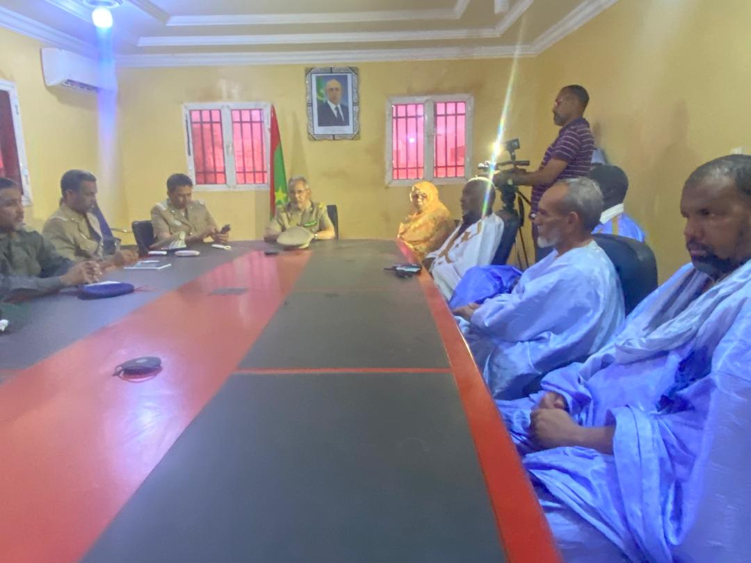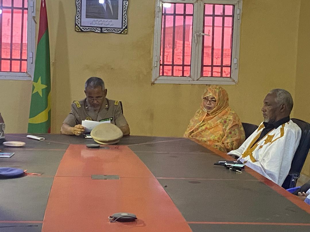 حضر الاجتماع حاكم المقاطعة السيد عالي أحمدو الحسين ونائب رئيس الجهة السيدة تحيى بوسيف والعمدة المساعد السيد سيد أحمد ولد محمد الامين والمندوب الجهوي لوزارة التجارةوالسياحة السيد الشيخ ولد ودادي