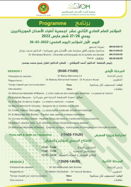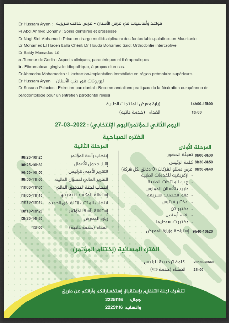 الاعلان عن برنامج المؤتمر العام لجمعية أطباء الاسنان الموريتانيين يومي 27/26 من الشهر الجاري