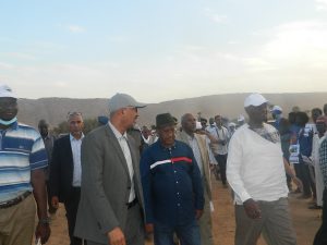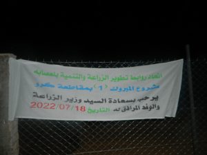بعد ذلك توجه الوزير والوفد المرافق لهالى المحطة الثانية التي انجزها المشروع وتصل مساحتها 100 هكتار والتي تعتبر اكبر منشأة في المنطقة حيث يواصل المشروع جهوده المتواصلة لاستصلاحها حيث تقدمت الاشغال فيها بشكل كبير ولاشك انه في نهايتها ستحدث ثورة زراعية هامة في المنطقة