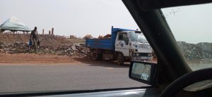 هذه المعاناة تسببت فيها حفر عميقه على طريق الامل في حي اتويميرت قرب محطة زيتي او ملتقى شارع التميشة