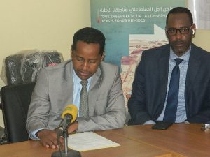 السيد محمد ولد عينات رئيس مصلحة المحميات الطبيعية ؛ الشاطئ والمناطق الرطبة بوازارة البيئة تحدث عن الاهمية البالغة التي توليها وزارة البيئة لهذه المناطق الرطبة نظرا لاهميتها ومايمكن ان توفره من موارد ضمن الاستغلال الطبيعي لها سواء تعلق الامر بالزراعة او ماتنتجه من ثمار ومواد غابوية غير خشبية اضافة الى الاسماك . وكذا اهميتها في صد خطورة التصحر